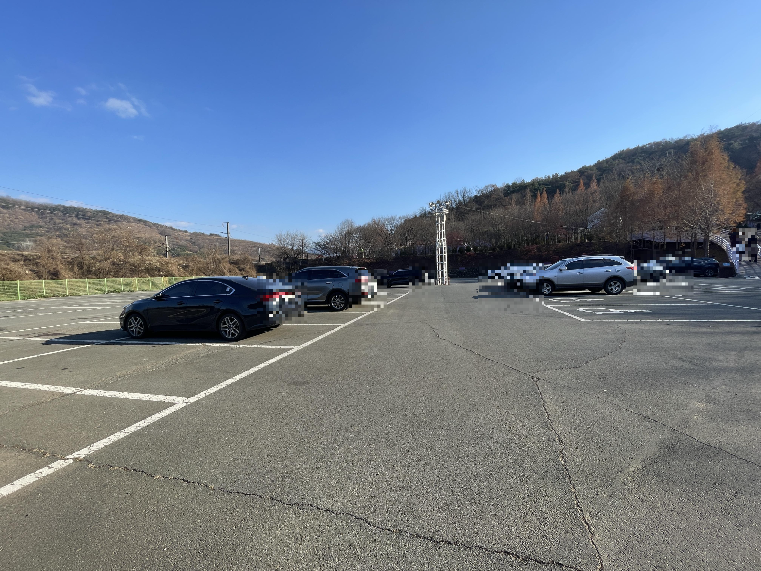 주차장 입구 들어가는 길이 조금 커브길이지만 조심조심 내려가면 넓은 주차장이 나와요~ 입구 출구가 반대로 나있는데 자꾸 출구 쪽으로 들어오는 차들 때문에 나중에 나갈 때 좀 고생했어요 ㅠㅠ