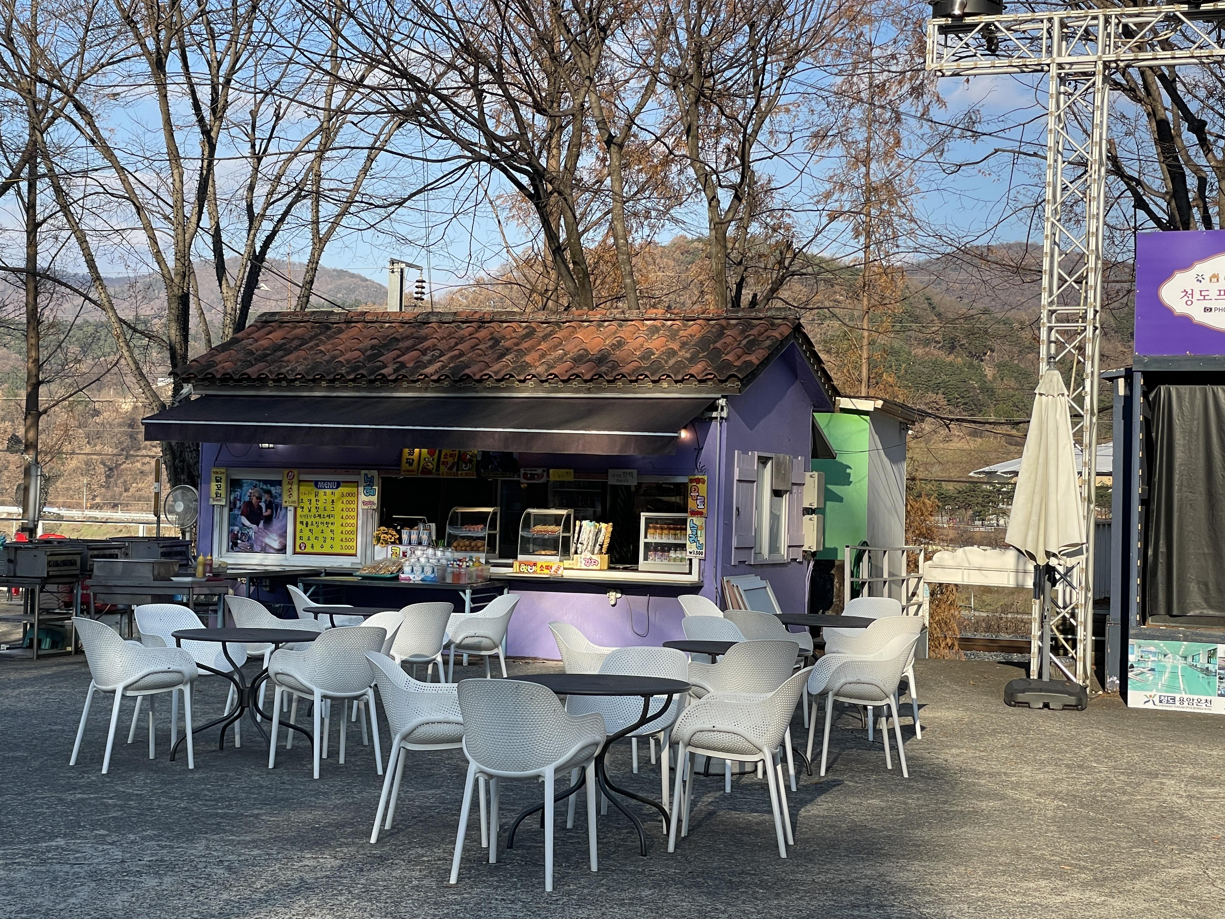 중앙 무대 쪽에 매점이 있어요. 진짜 없는 게 없어서 돌아다니다가 간단하게 요기할수있습니다. 테이블도 여러 개여서 앉아서 쉴 수 있어요.